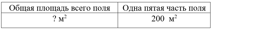 Краткое условие: Какова площадь картофельного поля, если одна пятая часть — 200 м²?