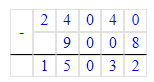 2) 24 км 040 м - 9 км 008 м = 15 км 32 м;