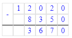 2) 12 км 020 м - 8 км 350 м = 3 км 670 м;