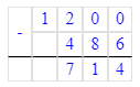 4) 1 т 200 кг – 486 кг = 714 кг;