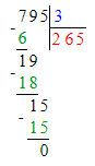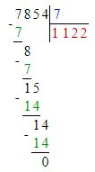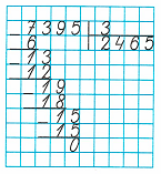 1. Делю тысячи. 7 тысяч – это первое неполное делимое. Значит, в частном получатся тысячи и в записи частного будет 4 цифры. Неполное частное чисел 7 и 3 равняется 2 – столько тысяч будет в частном. Умножу 2 на 3, получу 6 – столько тысяч разделили. Вычту 6 из 7, получу 1 – столько тысяч осталось разделить. Сравню остаток с делителем: число оставшихся тысяч меньше, чем 3.