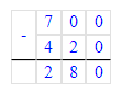3) 700-420=280 (кг)- ягод клюквы привезли в магазин.
