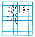 2. Делю единицы. 5 десятков и 6 единиц – это 56 единиц. Частное чисел 56 и 8 равняется 7. Умножу 7 на 8, получу 56 – столько единиц разделили. Вычту 56 из 56, получу 0. Разделили все единицы.