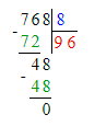1) 768 : 8 = 96;