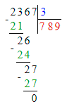 2) 2 367 : 3 = 789;