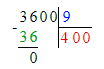 4) 3 600 : 9 = 400;