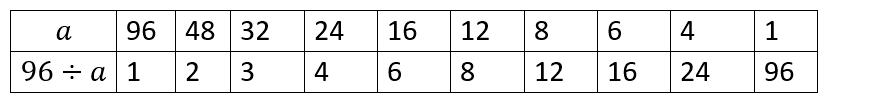 1; 2; 3; 4; 6; 8; 12; 16; 24; 96.