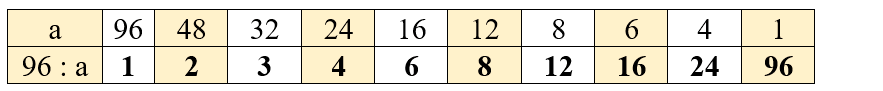 4. Если а = 24, то 96 : а = 96 : 24 = 4;