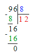 8. Если а = 6, то 96 : а = 96 : 6 = 16;