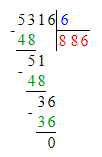 1) 5 316 : 6 = 886;