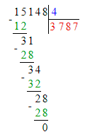2) 15 148 : 4 = 3 787;