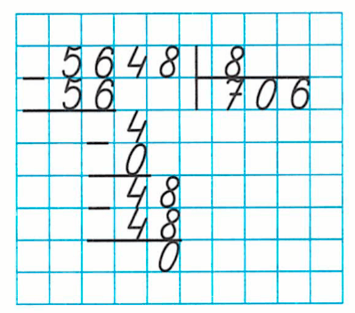 Умножу 7 на 8, получу 56- столько сотен разделили.