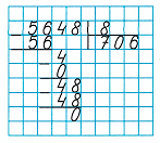 Делю сотни: 56 сот.- это – первое неполное делимое.