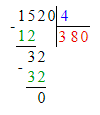 2. Делю десятки. 3 сотни и 2 десятка – это 32 десятка. 32 десятка – это второе неполное делимое. Частное чисел 32 и 4 равняется 8 – столько десятков будет в частном. Умножу 8 на 4, получу 32 – столько десятков разделили. Вычту 32 из 32, получу 0. Десятки разделили все.