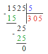 При делении 1 525 на 5, 1 тыс. нельзя разделить на 5 так, чтобы в частном получились тысячи.
