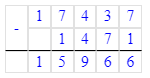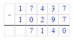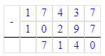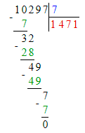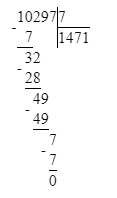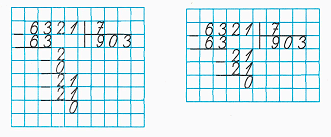 1. Сумма чисел 3 и 4 равняется 7. Значит, на месте единиц тысяч в делимом необходимо писать цифру 7. Подумаем, какое двузначное число с тремя единицами делится на 7 без остатка. Частное чисел 63 и 7 равняется 9. Следовательно, на месте десятков тысяч в делителе необходимо писать число 6, а на месте единиц тысяч в частном – число 9.
