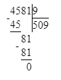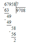 2. Подумаем, какое двузначное число с четырьмя десятками делится на 7 без остатка. Частное чисел 49 и 7 равняется 7. Следовательно, на месте сотен в делителе необходимо писать число 9, а на месте сотен в частном – число 7.