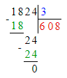 3. На месте десятков в частном необходимо писать цифру 0. Сумма чисел 6 и 2 равняется 8. Следовательно, на месте единиц в частном необходимо писать цифру 8.