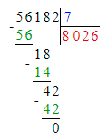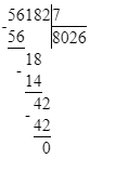 4. Частное чисел 56 и 7 равняется 8. Значит, на месте десятков в делимом нужно писать число 5, а на месте единиц в частном – цифру 8.