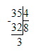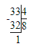 3. Делю десятки. 1 сотня и 3 десятка – это 13 десятков. Неполное частное чисел 13 и 8 равняется 1 – столько десятков будет в частном. Произведение чисел 1 и 8 равняется 8 – столько десятков разделили. Вычту 8 из 13, получу 5 – столько десятков осталось разделить. Проверяю остаток, число оставшихся десятков меньше, чем 8.
