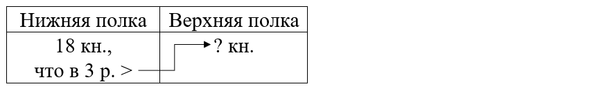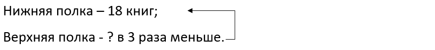 Краткое условие: На нижней полке 18 книг, это в 3 раза больше, чем на верхней. Сколько книг на верхней полке?