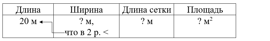 2) Р = (20 + 10) · 2 = 30 · 2 = 60 м – длина сетки