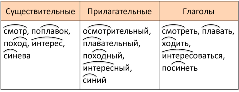 Выпишите в первый столбик существительные, во второй — прилагательные, а в третий — глаголы. Докажите правильность своего решения. Выделите в словах корни.