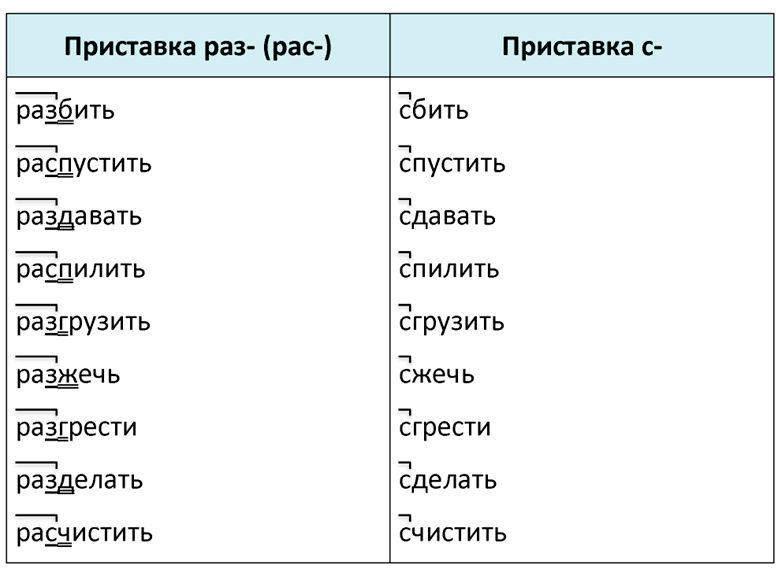 Подберите к каждому из данных слов однокоренные с приставками раз- {рас-) и с-. Запишите их в две колонки.