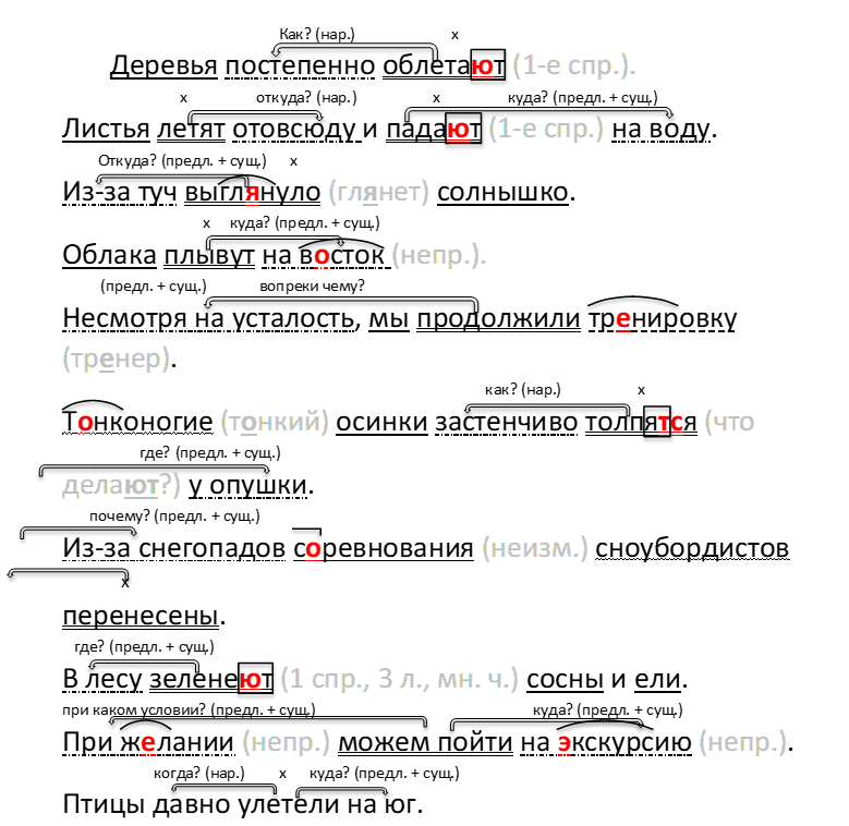 Спишите, вставляя пропущенные буквы и раскрывая скобки. Разберите предложения по членам. В каждом из них укажите, на какой вопрос отвечает обстоятельство, к какому слову оно относится и какой частью речи выражено.