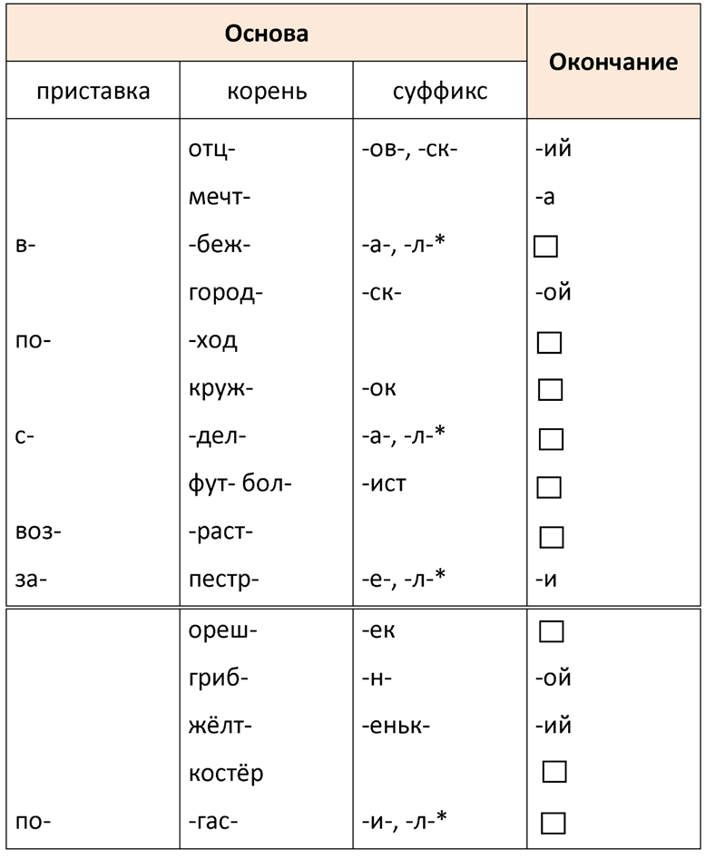 *Суффикс глаголов прошедшего времени -л- является формообразующим и не входит в основу слова.