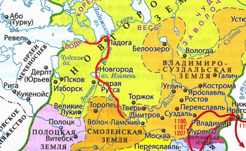 Торговые пути шли “из варяг в греки”, от Пскова и во Владимиро-Суздальскую землю.