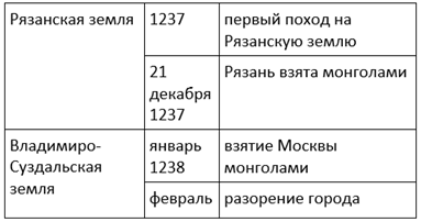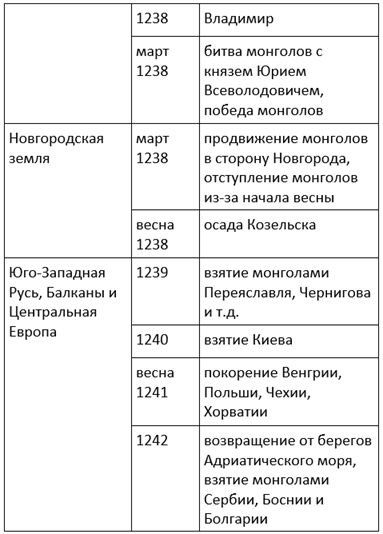 Хронологическая таблица основных событий, связанных с походами Батыя на Русь