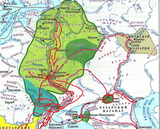 Князья Игорь и Святослав присоединили такие города, как: Саркел, Керчь, Тмутаракань, Пересечен, Олешье.