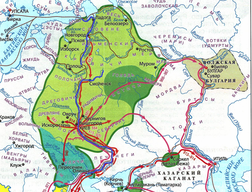 С образованием государства Русь местные славянские племена были обязаны платить дань, однако их стали защищать первые князья и их дружины. Первые князья вели активную захватническую политику, а также следили за сохранностью торговых путей, что обогатило земли в целом.