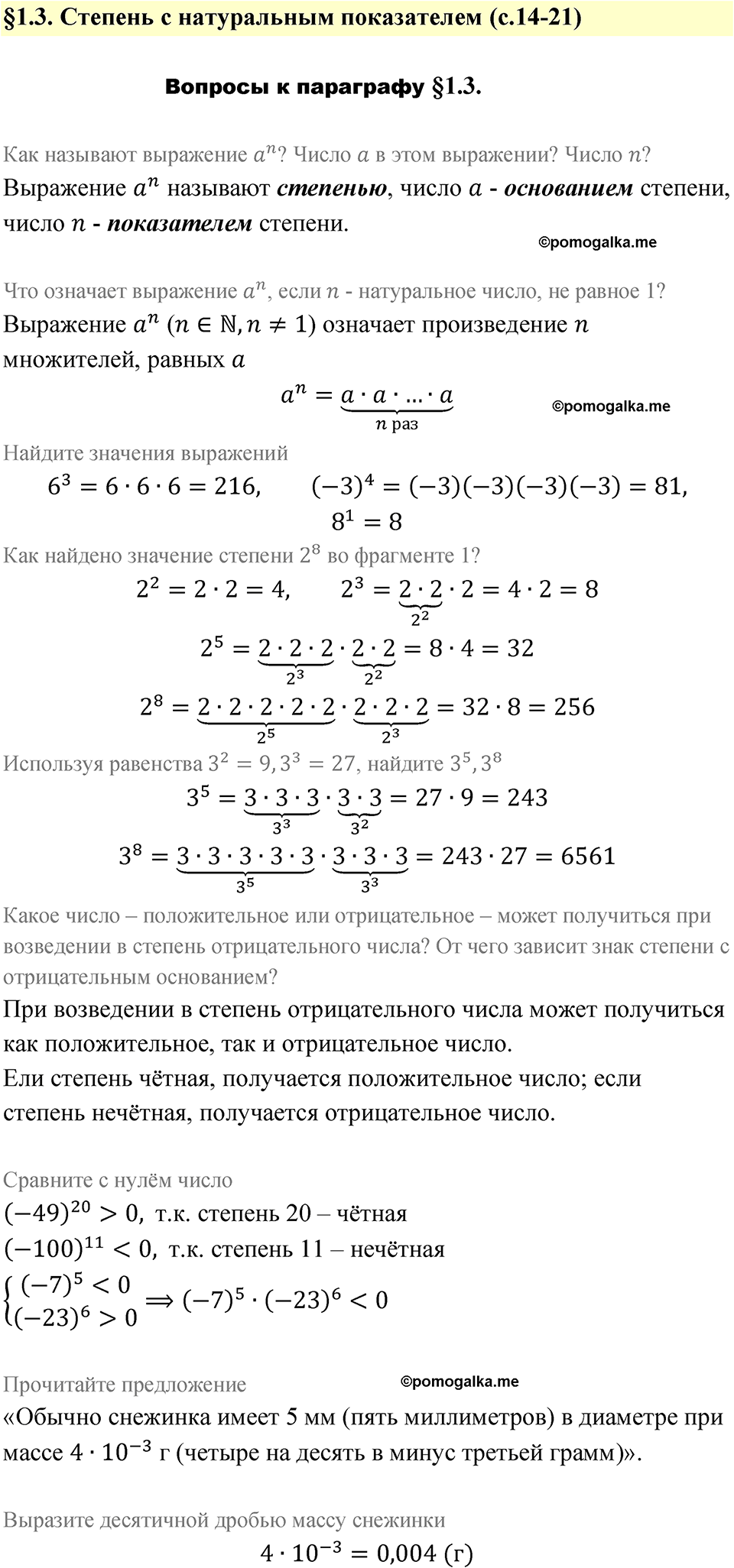 Страница 16 вопросы после §1.3, ГДЗ по алгебре за 7 класс к учебнику Дорофеева 2024 года