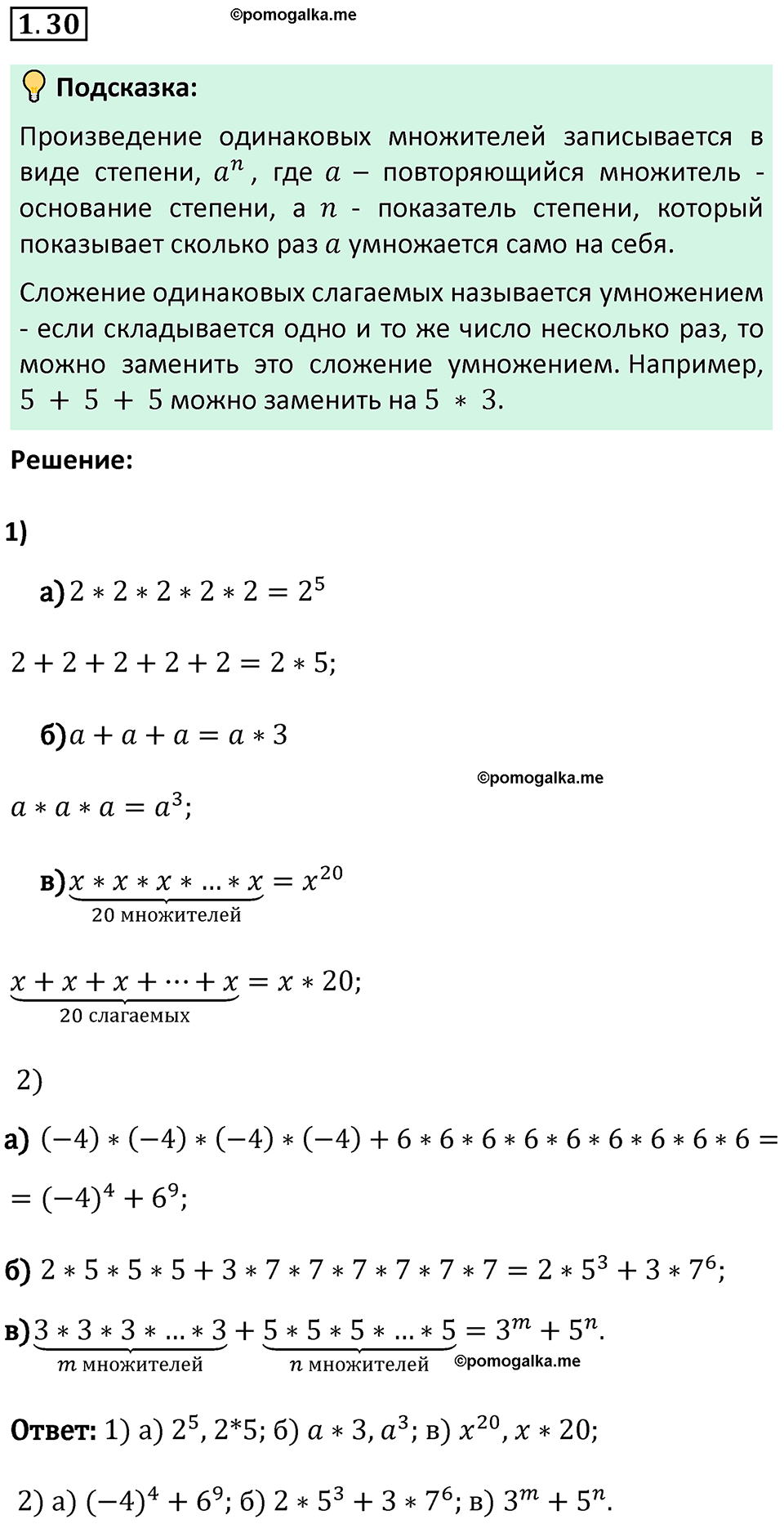 Номер 1.30, ГДЗ по алгебре за 7 класс к учебнику Дорофеева 2024 года
