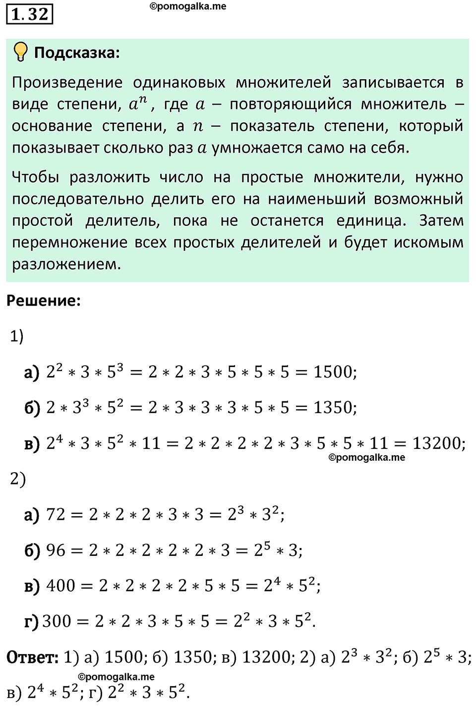 Номер 1.32, ГДЗ по алгебре за 7 класс к учебнику Дорофеева 2024 года