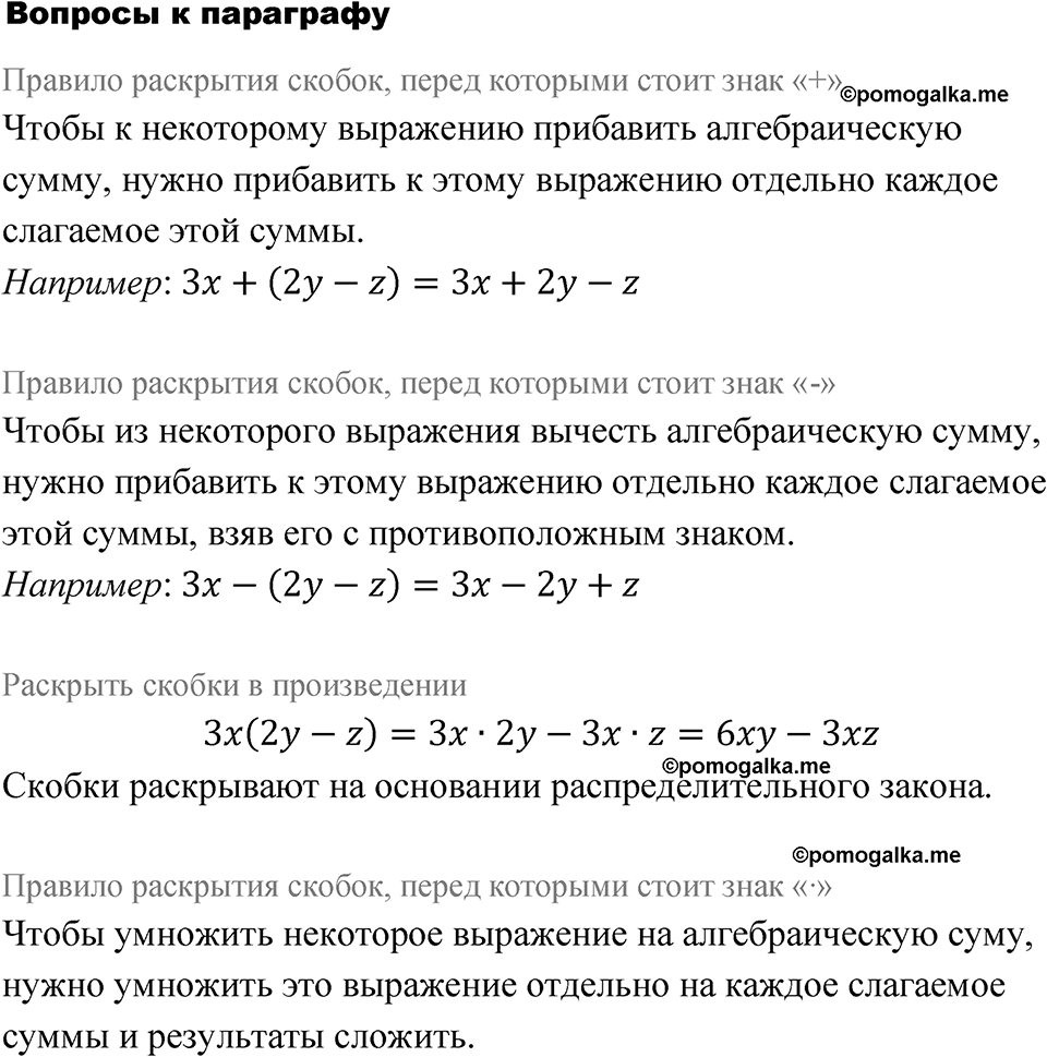 Страница 73 вопросы после §3.3, ГДЗ по алгебре за 7 класс к учебнику Дорофеева 2024 года