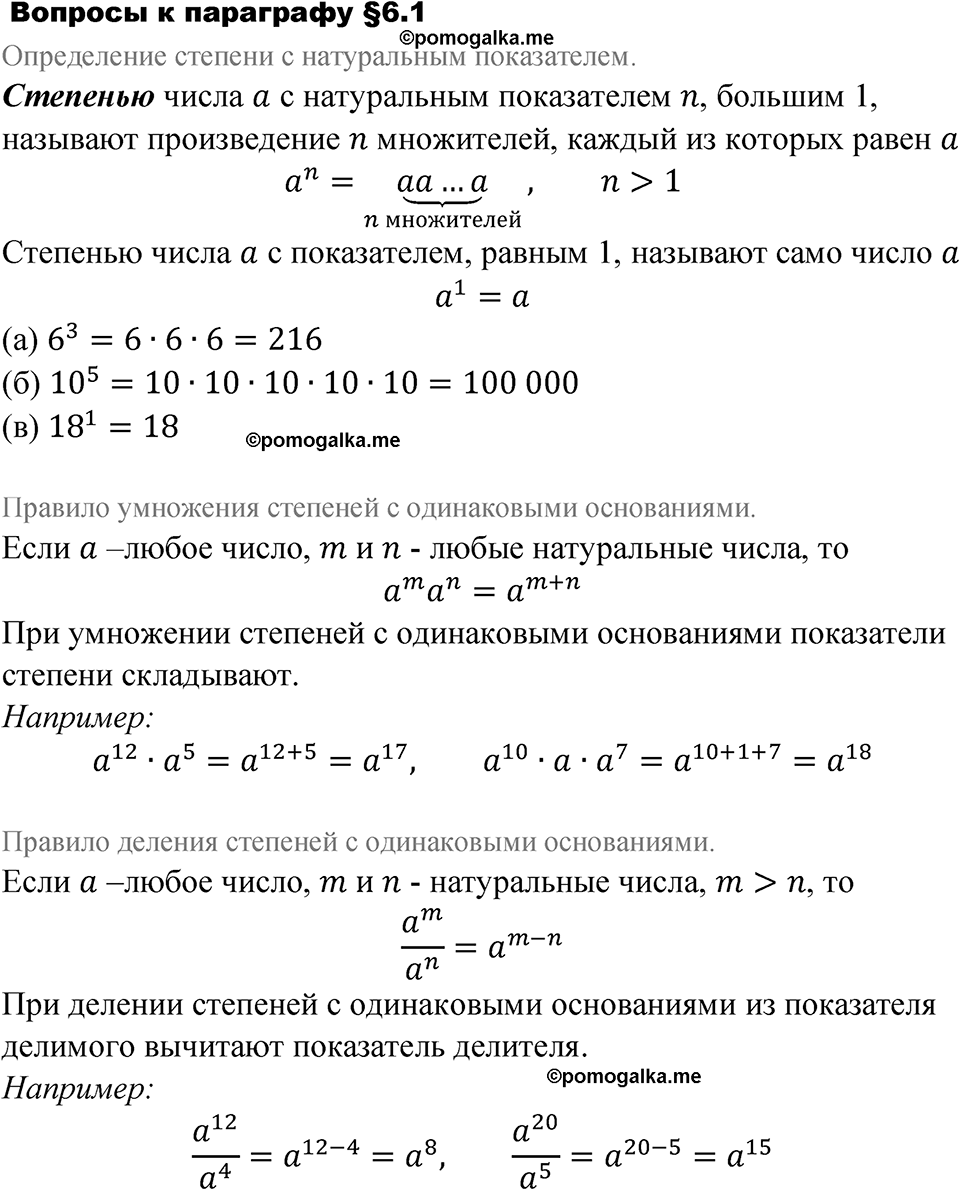 Страница 146 вопросы после §6.1, ГДЗ по алгебре за 7 класс к учебнику Дорофеева 2024 года