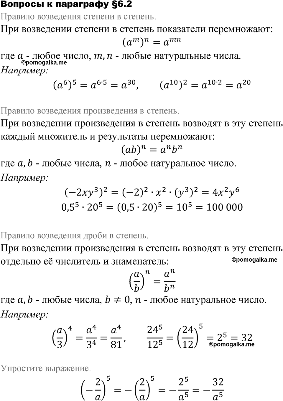 Страница 150 вопросы после §6.2, ГДЗ по алгебре за 7 класс к учебнику Дорофеева 2024 года