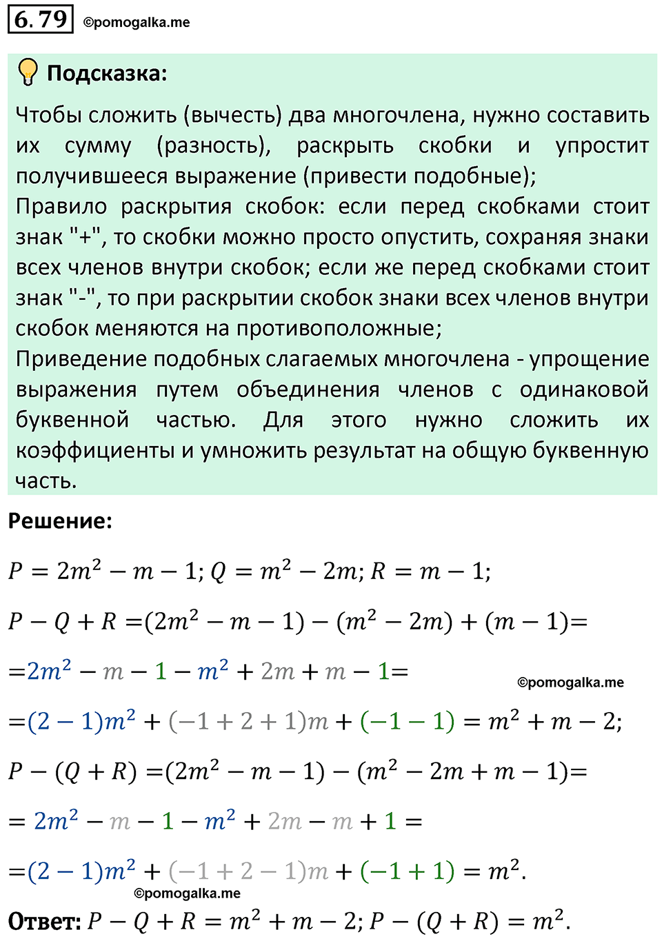 Номер 6.79, ГДЗ по алгебре за 7 класс к учебнику Дорофеева 2024 года