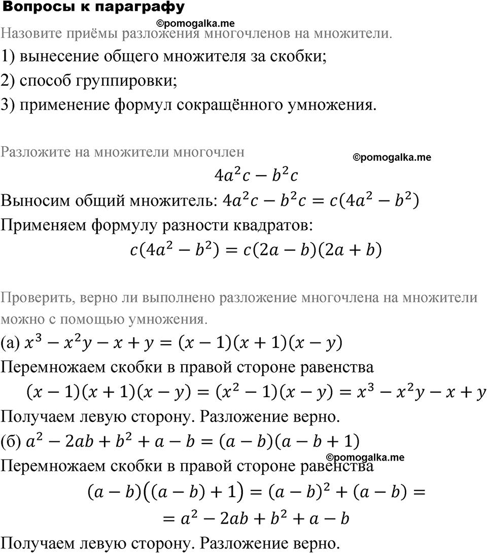 Номер 7.73 вопросы после §7.5, ГДЗ по алгебре за 7 класс к учебнику Дорофеева 2024 года