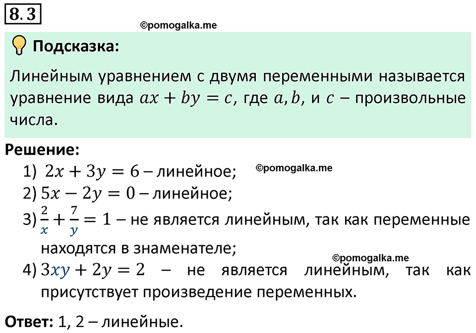 Номер 8.3, ГДЗ по алгебре за 7 класс к учебнику Дорофеева 2024 года