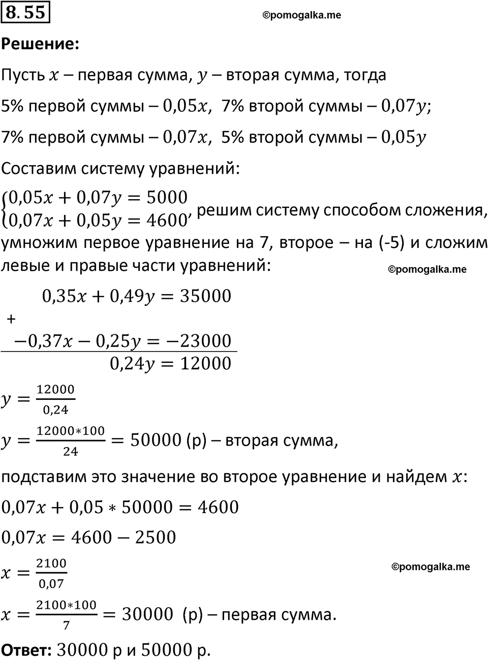 Номер 8.55, ГДЗ по алгебре за 7 класс к учебнику Дорофеева 2024 года