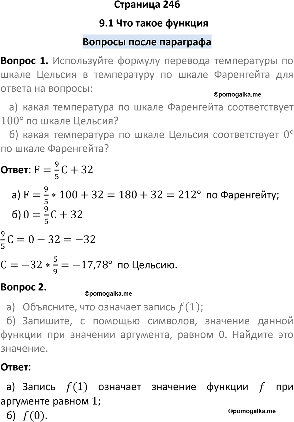 Страница 246 вопросы после §9.1, ГДЗ по алгебре за 7 класс к учебнику Дорофеева 2024 года