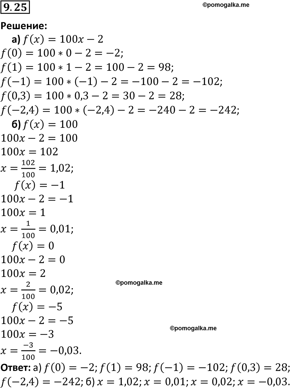 Номер 9.25, ГДЗ по алгебре за 7 класс к учебнику Дорофеева 2024 года
