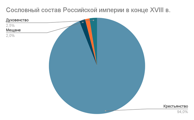 В начале XIX в. экономика России была аграрной и опиралась на крепостной труд. Это напрямую отражалось в сословной структуре:
