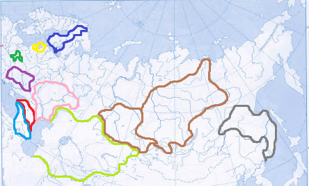 9. Коричневым – Западная и Восточная Сибирь;